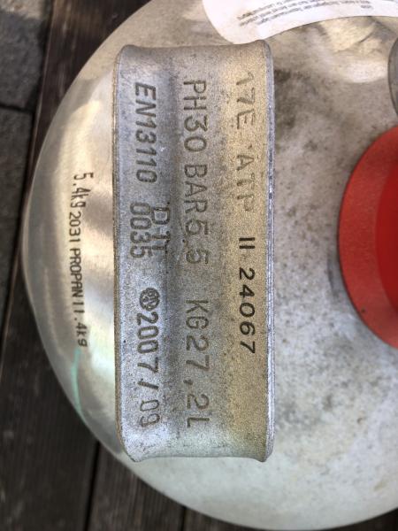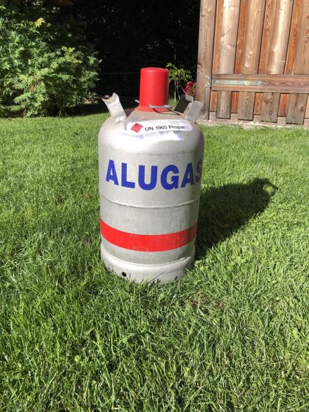 Eine weitere Alugasflasche (halb voll) kann ebenfalls abgegeben werden.