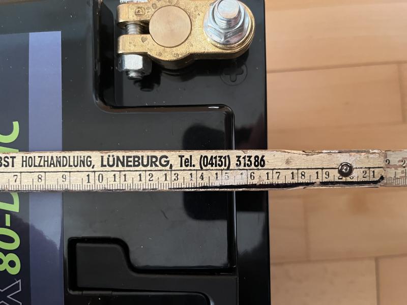 80Ah Nennkapazität Max. Entladestrom: 100A (1200 Watt) 30 min Spitzen-Entladestrom: 250A (3000 Watt) 5 min Nennspannung: 12,8V Maße (LxWxH): 355 x 176 x 190 mm (DIN) LiFePO4 Gewicht: 12,5 kg Batteriepolklemme M8