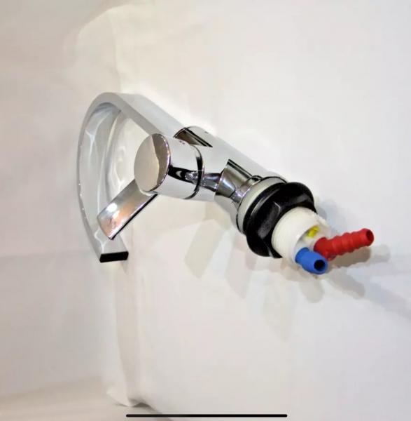 Er ist für Druckpumpen geeignet bis zu einem maximalen Wasserdruck von 6 bar. Der Wasserhahn hat einen kräftigen Wasserstrahl und ist mit einem Drehknopf versehen. Er ist einfach zu montieren da er mit dem Stecksystem angeschlossen wird. Wasserhahn war nur ganz kurz eingebaut und hat keine Gebrauchspuren.