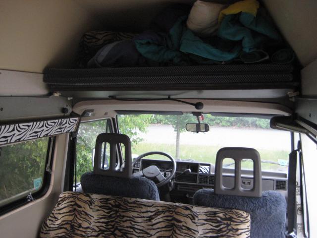 Durch das verbaute Hochdach bietet sich im Innenraum genügend Platz. Auch eine ausreichende Stehhöhe ist somit gegeben. Es gibt zahlreiche Verstaumöglichkeiten. Die Sitzgruppe im Fahrzeug lässt sich mit ein paar Handgriffen zu einem 2-er Bett ausbauen. Der 3te Schlafplatz befindet sich im Hochdach. Dieses Bett lässt sich bei Bedarf zügig Auf – und Abbauen.