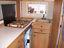 Küche mit 3 er Gasherd, Kühlschrank, Spülbecken u. viel Staufächer ( siehe Bild )