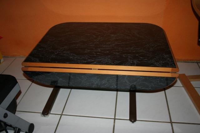 Bei dem Tisch handelt es sich um einen Klapptisch mit dem Maß 85x75 cm (aufgeklappt)