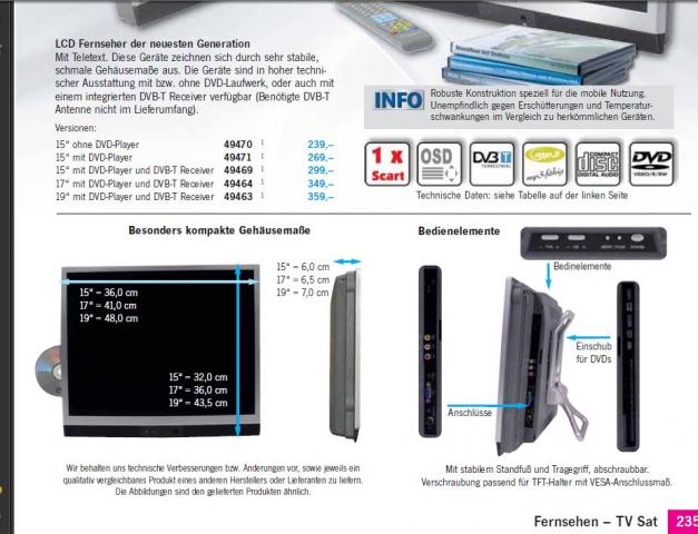 17“ mit DVD-Player und DVB-T Receiver 49464 1 349,–