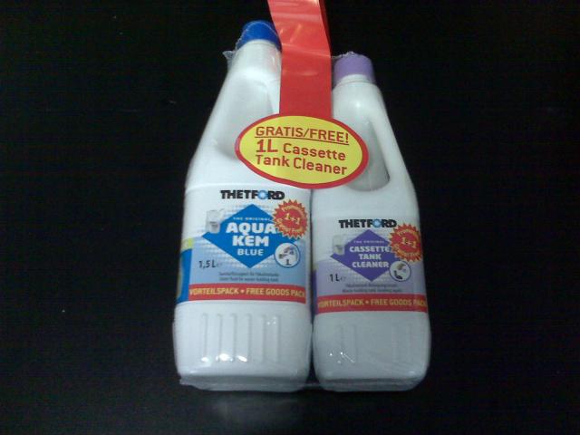 1,5 Liter Aqua Kem Blue und 1 Liter Cassetten Tank Cleaner im Aktionspack.