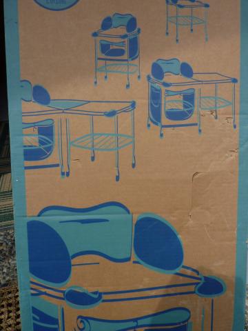 Tischgestell und Windschutz Stahl silber /blau lackiert, H 76 B 67 T 38, Zwischenboden Chromgitter Hartfaserplatte, Unterbauplane Kunststoff. NP 75,-, unbenutzt. und orvp.