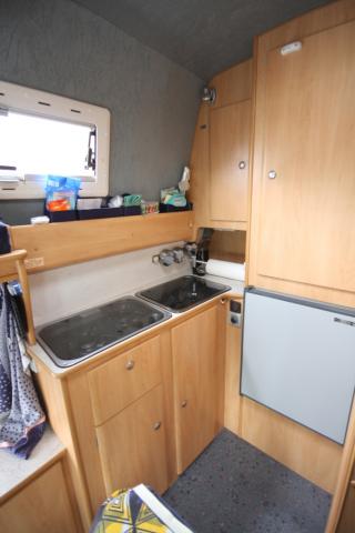 Küchenzeile mit 2-Flammenkocher, Spüle, Kompressorkühlschrank Waeco MDC 65
