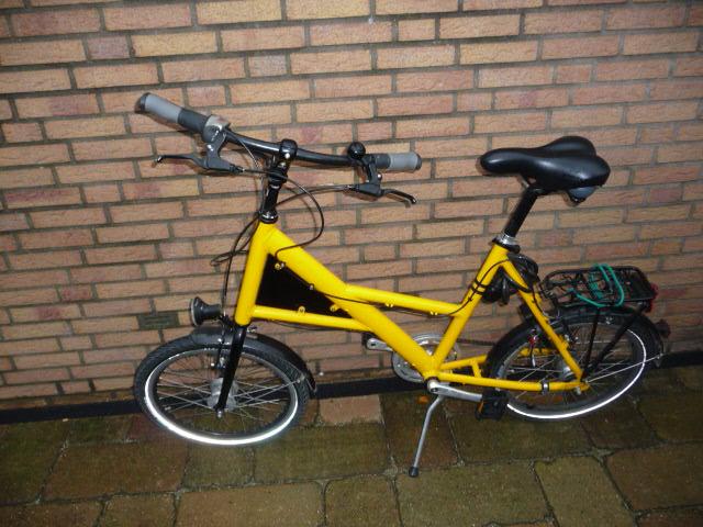 Fahrrad mit sehr kompakten Abmessungen mit vollwertiger Ausstattung. Lenker und Pedalen können Platzsparend umgeklappt werden, dadurch ideal z.B. für eine Womogarage oder wenn man wenig Platz hat auf der Halterung.