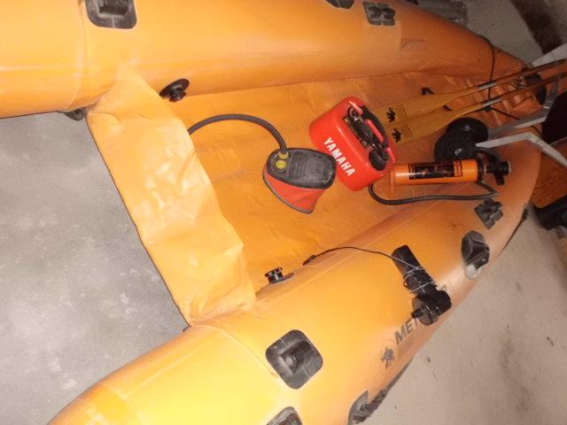 Mit Führerscheinfreiem Yamaha 5 PS 2 Takt-Außenbordmotor in sehr gutem Zustand (s. Bilder), insgesamt wenig gelaufen. Betrieb mit umweltschonendem 1:100 Gemisch, ein entsprechender 12l Tank mit Anschlussgarnitur, 2 Rettungswesten, 2 Paddel, Anker, Luftpumpe,ersatz Propeller,Tragetasche so wie Slipräder mit Halterung zur Montage am Schlauchbootspeigel gehören dazu.