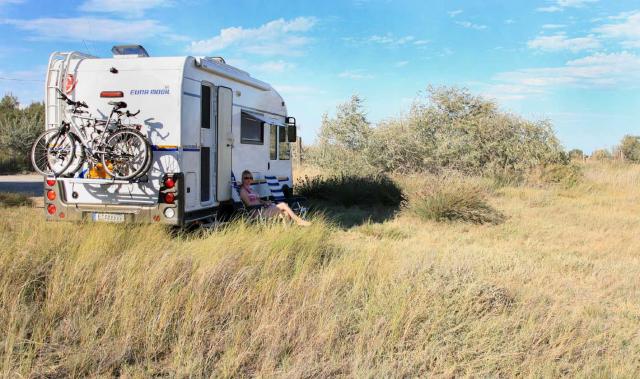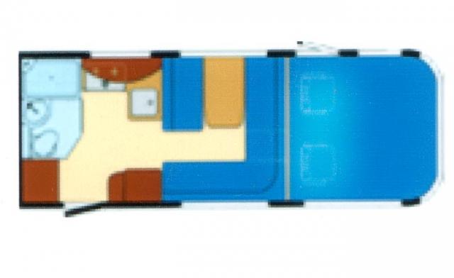 Für uns hat er den idealen Grundriss : ohne Garage innen groß und außen rel. klein, da die Fahrräder draußen sind ; viel Stauraum unter den großen Sitzbänken und im Doppelboden; große Küche und großes Bad mit separater Dusche; und – auch wenn wir immer nur zu zweit gereist sind – bietet die große Seitensitzbank den Riesenvorteil, dass man nach Fahrerwechsel auch während der Fahrt mal die „Beine hochlegen“ kann…