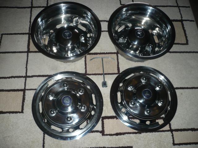 Die angebotenen Radzierblenden bestehen aus V2A - Material und sind hochglanz poliert. Zusätzlich auf der Naben-Abdeckung ist auf jeder Radzierblende ein original Mercedes Emblem (Stern) angebracht. Gegen Scheuerstellen an/von der original Felge ist ein Gummischutz an der Innenseite aufgeklebt. Auf der Web-Seite von Womo-world kann noch zusätzlich Information angesehen werden.
