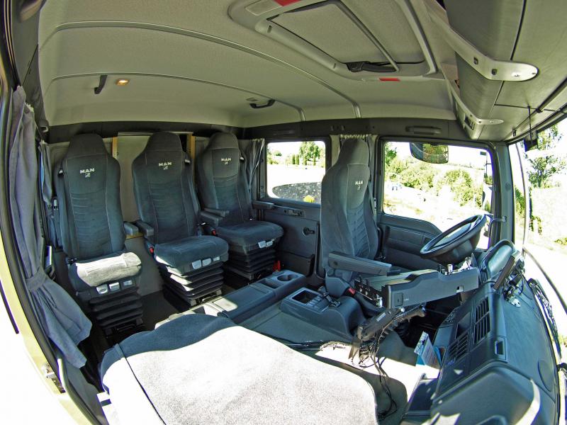| Beschreibung: | Komfortausstattung Fahrerhaus: MAN TGM 18.280 LAEC 4x4 DoKa-Fahrerhaus mit 5 Sitzplätzen Zusätzliche Komfortsitze luftgefedert mit 3-Punktgurten für 3 weitere Personen im Fahrerhaus Klimaanlage Fahrerhaus mit automatischer, elektronischer Regelung ABS Anti Blockier System Tempomat im Lenkrad bedienbar Soundsystem mit Fernbedienung im Lenkrad elektrische Fensterheber und beheizbare Aussen- sowie Bordstein/Weitwinkelspiegel Komfortsitze, luftgefedert, mit Armlehnen und Lendenwirbelstützen Heizung für Fahrer- und Beifahrersitz Feinstaubfilter (Pollenfilter) Aussentemperaturanzeige Navigationssystem GARMIN mit externer Antenne