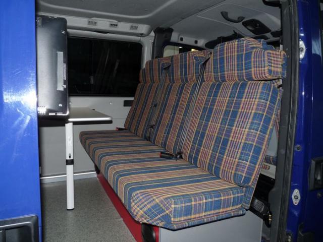 TÜV und einige Teile sind NEU. Der Bus(PKW-Zulassung) wurde professionell umgebaut u. ist zur idealen Nutzung von 2-3 Pers. geeignet. Im Bus sind 7 Sitze, alle mit 3-Punkt-Gurten verbaut. Ich habe jedoch nur die vorderen 3 Sitze vom TÜV begutachten lassen. Ich habe ihn nur zu 2. oder 3. genutzt. Die hinteren 4 Sitzmöglichkeiten könnte der Käufer bei Bedarf selbst begutachten lassen. Der Bus ist 226 cm hoch 200 cm breit und ca 540 cm lang. Die Innenausstattung ist so gut wie neu, ca. 9 Monate alt. Er bietet 7 Sitzmöglichkeiten. Das Auto ist vom Werk aus mit sehr vielen Extras ausgestattet u.a.ein paar Highlights: Klimaautomatik, Standheizung, Zusatzheizung und extra Belüftungssystem für Gastraum, Tempomat, ESP, 2 x elektr. Fensterheber vorne, Nebelscheinwerfer, Bordcomputer, beheizbare Außenspiegel, usw.. Mit folgenden Extras wurde der Bus von einer auf Wohnmobilausbau spezialisierten Firma ausgestattet: getrennte Stromversorgung von einer extra Bordbatterie (Varta), Rückfahrkamera, im Gastraum ein LCD Fernseher mit integriertem DVD-Player und DVB-T Empfang, dazu wurde eine professionelle DVB-T aktive Antenne montiert (überall Fernseh schauen möglich), zusätzlich wurde noch ein Kenwood-aktiver-Subwoofer und zwei hochwertige Pioneer-Lautsprecher eingebaut. Hinten 4 Sitzmöglichkeiten, alle mit Gurt, ein dazu gehöriger Tisch, ein Schranksystem, die Sitzbänke sind aufklappbar und bieten eine Schlafmöglichkeit bis zu 3 Personen. Der Boden ist mit extrem strapazierfähigem PVC ausgelegt. 6 Befestigungsösen befinden sich auf dem Boden. Es ist möglich, bequem ein Motorrad/Roller zu transportieren (uns war es sehr wichtig, das der Bus auch als Transporter genutzt werden kann). Im Gastraum gibt es mehrere Steckdosenmöglichkeiten und ein Messgerät des Bordbatteriestatus. Im Fahrerbereich sind außer dem Fahrersitz zwei einzelne komfortable Sitze eingebaut (statt der unbequemen 2er Bank). Alle Sitze und Bänke im Bus sind mit dem gleichen hochwertigen teflonbeschichteten Stoff professionell bezogen. Der Fahrerraum ist ausgestattet mit einem Doppel-DIN Radio/DVD-Player/Rückfahrkamerakontrolle, alle Videoformate spielt es ab, auch von USB (AVI, DIWIX usw..), es ist verbunden mit dem Fernseher im Gastraum, so dass gleichzeitig das selbe Programm zu sehen ist. Die Fenster des Gastraums wurden mit hochwertiger Sonnenschutzfolie blick dicht abgedunkelt. Im Jan. 2012 wurden 4 neue All-Wetter-Reifen montiert. Der Bus ist optisch, sowohl innen als auch außen, sehr schön, jedoch kein Neuwagen. Als Mängel wurde beim TÜV ein wirklich leichtes Öl-schwitzen zwischen Getriebe und Motor festgestellt. Es führt nicht zu einem messbare Ölverlust und tropft auch nicht! Beim nächsten Kupplungtausch ( irgendwann, wenn es nötig ist) müssen die Dichtungen erneuert werden. Außerdem hat das Auspuffendrohr (nicht der Endtopf!) ein mini Loch, muß nicht getauscht, nur geschweißt werden.