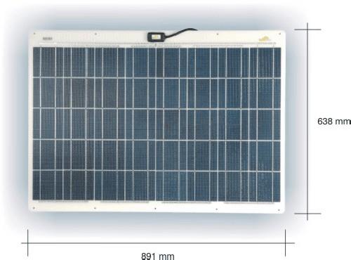 Typ SW52/1 - 12Volt/52Watt 640*780*5mm mit 36 Polykristallinen Solarzellen. Gewicht ca. 5,5kg.