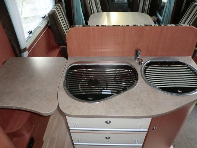 große Heckgarage , Breitspurfahrwerk Hinterachse , 5 Schlafpätze, 4 Sitzplätze , 6 Essplätze , Heckbett höhenverstellbar 136 X 202 , großer Kühl und Gefrierschrank,