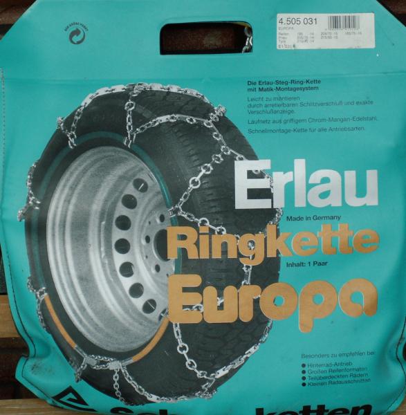 | Beschreibung: | Erlau-Steg-Ring-Kette mit Matik-Montagesystem. Leicht zu montieren durch arretierbaren Schlitzverschluß und exakte Verschlußanzeige. Laufnetz aus griffigem Chrom-Mangan-Edelstahl. Schnellmontagekette für alle Antriebsarten. Besonders zu empfehlen bei: Hinterradantrieb ( sind natürlich auch für Vorderradantrieb geeignet ) Großen Reifenformaten Teilüberdeckten Rädern Kleinen Radausschnitten Für folgende Reifengrößen: 195-14, 205/75-14, 215/70-14, 205/70-15, 215/65- 15, 185/75-16