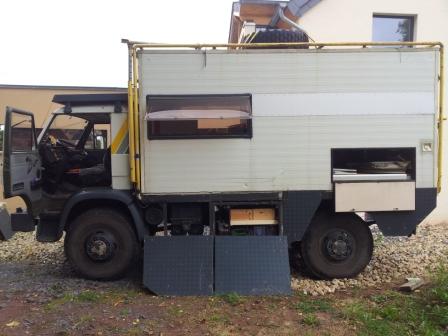 MAN Typ L03 9.150 Baujahr 1990 +/- 125 200km Als Camper angemeldet mit 7 Sitzplätzen und ohne Tachographe Hubraum: 6.871ccm Diesel Leergewicht 5900kg Max Gewicht 9t (auch ablastbar auf 7.5t möglich) Dieseltank fast 650 Liter Neues ZF Getriebe mit max. Geschw. 110km/h Zuschaltbares Allrad mit Differentialsperren und Getriebereduktion Blattfedern erneuert 2007 Standheizung Webasto 2009 erneuert Koffer ausgebaut mit 55 mm Isolierung (absolut wintertauglich) Innenraumhöhe 1.90m Seitz Isolierfenster mit Sonnen-,Sicht-und Fliegenschutzrollos 2Startbatterien + 2 Bordbatterien 280Ah Stromaggregat Traveller 2500H 220V/12V 2.5KW (Benzin) Stromwandler 220V auf 24V/12V
