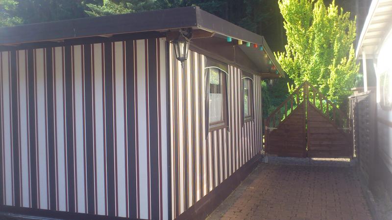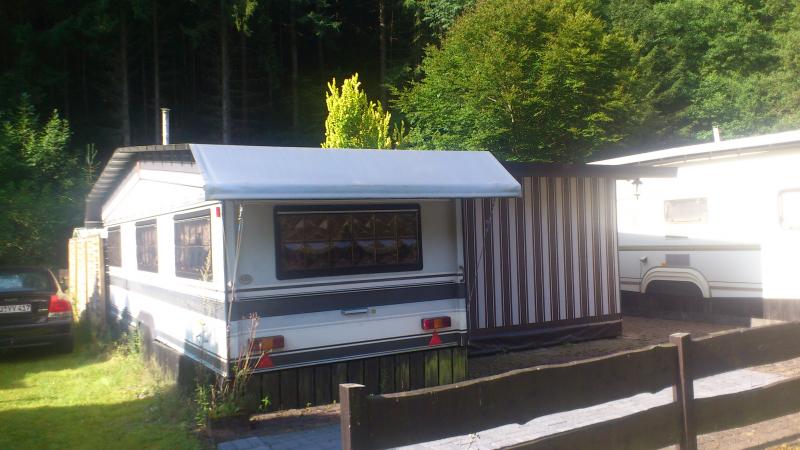 | Beschreibung: | Wir bieten hier einen feststehenden Landhaus Campingwagen mit ausgebautem Vorzelt, Winterfest, an auf einem Naturverbundenen Campingplatz in Waldlage. Ideal für ganzjahres Camper die gerne Wandern oder Mountenbiken im Wald oder welche die einfach Ihre Ruhe haben wollen. Der Campingplatz ist das ganze Jahr offen. Sanitäranlage im Winter beheizt(alt aber OK, ca 20 m vom Platz entfernt), das Grundstück 198qm²liegt direkt an einem kleinen Bach (Nette). Der Campingplatz liegt zwischen Kempenich und Mayen (eine Stadt die viel zu bieten hat) 20 km vom Nürburgring entfernt für alle die Rennen lieben, und 14 km vom Laacher See. Zum Wohnwagen, es ist ein Hobby Landhaus 9,50m lang und 2,50m breit, bestehend aus einem Schlafbereich, einer Kleinen Sitzgruppe und einem Wohnzimmerbereich, die zum Bett umgebaut werden können. Es gibt noch ein Bad mit Campingtoilette, einen Küchenblock mit Kühlschrank. Fahrzeugbrief vorhanden, war noch nie angemeldet, das Vorzelt ist von der Firma Nellen und wintertauglich ausgebaut länge ca. 7m im ganzen ca 40qm² Wohnfläche. Schlafplätze 5-6, Küche ist in Handarbeit entstanden |