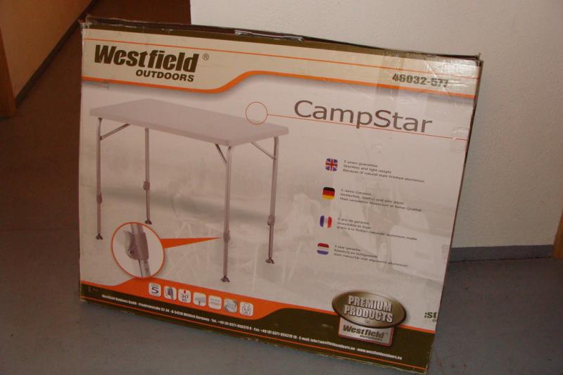 | Beschreibung: | Biete einen tollen Campingtisch Marke "Westfield" zum Verkauf an. Leider ist dieser Tisch für unsere kleine Heckgarage auf Dauer die entscheidenden cm zu groß - ansonsten würden wir ihn nicht hergeben, da er wirklich prima verarbeitet und standfest ist und wir lange danach gesucht hatten. Der Neupreis beläuft sich auf 90,- EUR zzgl. Versandt (siehe Berger etc.).