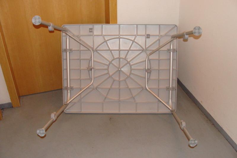 Material: Tischplatte: Kunststoff, Untergestell: Aluminium