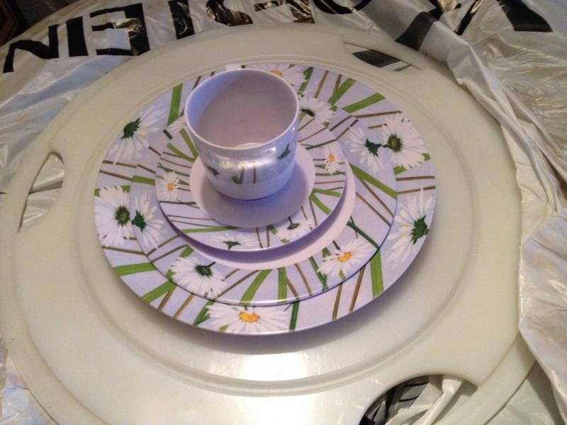 Komplettes 3teiliges Melamingeschirr abzugeben. Zusätzlich 3 Teller.