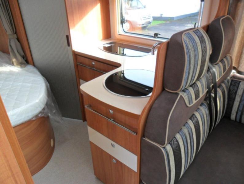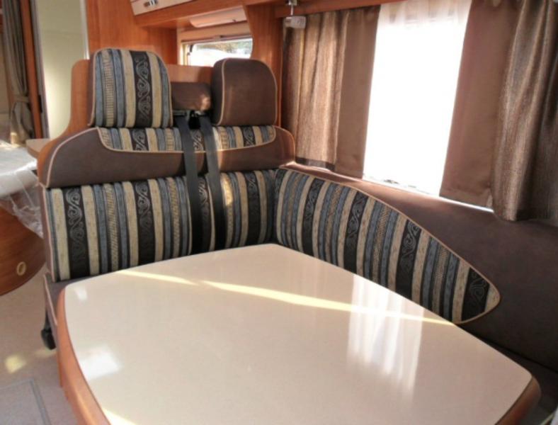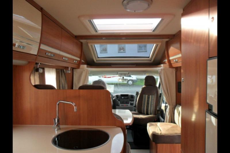 Innenausstattung Aufbau: 150 Liter Frischwassertank 100 Liter Abwassertank Doppelter Boden Panorama Glasdach isoliert im Alkoven Großes Heki Wohnbereich Kleines Heki Küchenbereich Klimaanlage Dometic Freshlight mit FB Duo Matic mit Eis ex SOG LED Beleuchtung im kompletten Fahrzeug Optimierte Seitensitzbank (Mittelpolster und Kopfstütze) Optimierte Seitensitzbank (L-Schenkel) 3 Kissen in Polsterbezug Wohnraumteppich original Eura Mobil Fliegengittertür Großer 190ltr. Kühlschrank + Gefrierfach Backofen nicht auf Foto, ist jedoch über dem Gefrierfach Küchenschubladen mit Selbsteinzug Herd 3 flammig und Spüle mit Glasabdeckung 2 zusätzliche 230V Steckdosen im Küchenbereich Gesundheitsmatratze (wie Lattoflex) 2 zusätzliche Haken im Bad Optimierung der Lagerfläche in der Heckgarage Alle Fensterscheiben haben eine Jalousie und besitzen Fliegengitter Die beiden Heki`s haben eine Jalousie und besitzen Fliegengitter Das Panorama Glasdach besitzt eine Jalousie 2 AGM Aufbaubatterien Markise Fiamma 45F
