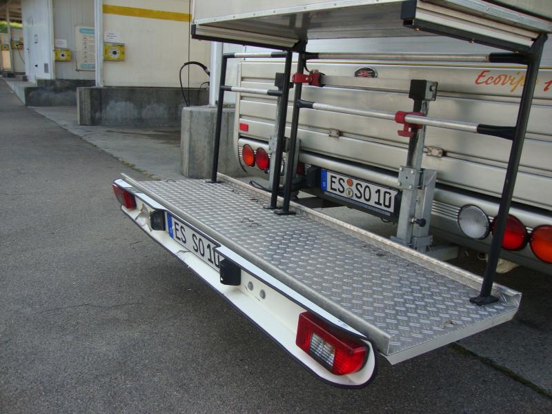 Der Hecklastträger kann auf jedes Wohnmobil montiert werden, soweit die Breite mindestens 2 Meter beträgt. Selbstverständlich gibt es eine gut verständliche Montageanleitung vom Hersteller für den Selbstanbauer. Sollte ihr Fahrzeug ein anderen Grundrahmen haben als der Fiat Daily benötigen Sie max. einen neuen Grundrahmen, der laut Hersteller 279,00 Euro kostet. Ich hatte den Hecklastträger an einem Laika Ecovip (Fiat Daily) montiert. Das Wohnmobil habe ich verkauft und deshalb benötige ich auch den Hecklastträger nicht mehr. Er ist 4 Jahre alt, in einem guten Zustand und der Neupreis lag bei 4.195 Euro (Rechnung liegt vor). |