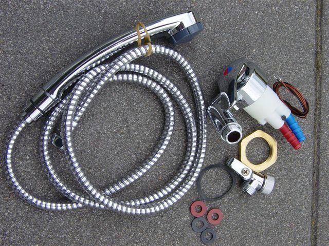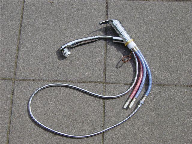 Armatur mit Keramik-Kartusche; Brause: Strahl und Dusche; 1,5m Schlauch; schwenkbar um ca. 90°.