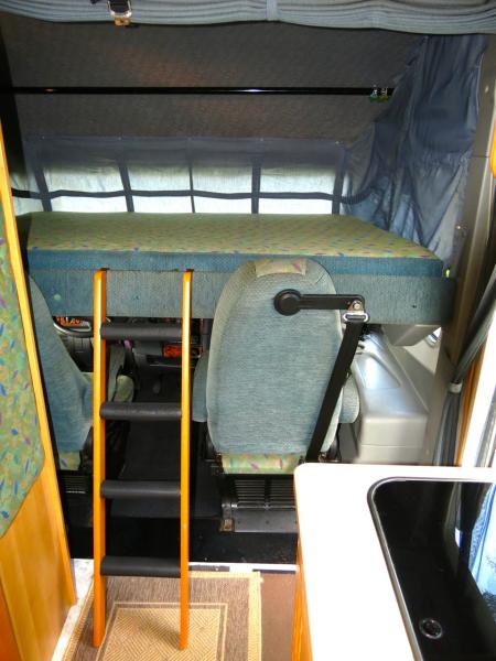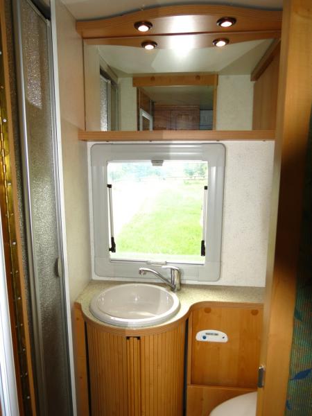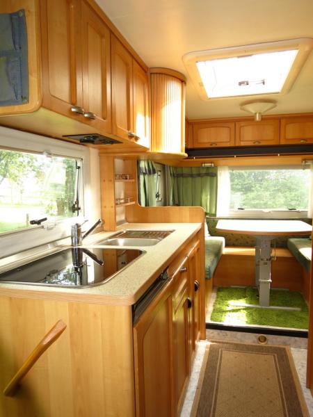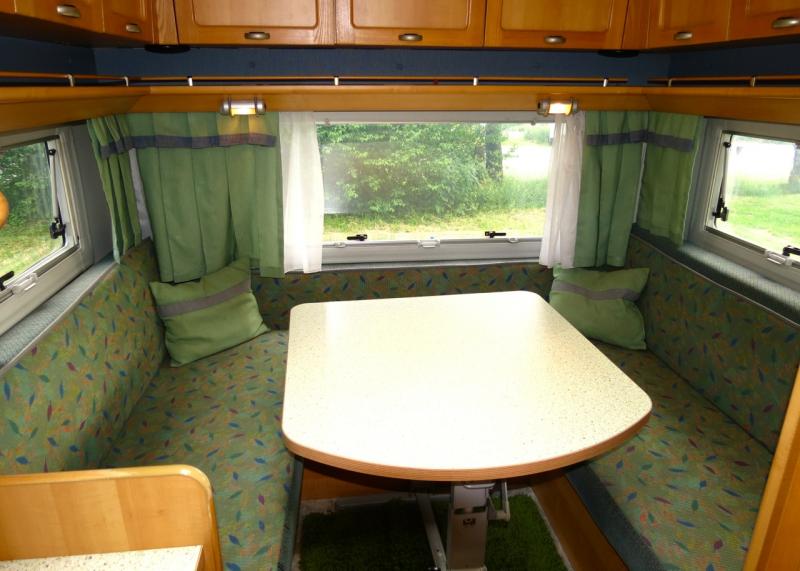 [u:zsstggbg]Innenausstattung Wohnbereich:[/u:zsstggbg] - [b:zsstggbg]Hecksitzgruppe[/b:zsstggbg] mit herrlichem Rundblick, nachts umrüstbar zum langen Bett ([b:zsstggbg]2,04 m[/b:zsstggbg] x 1,40m) - [b:zsstggbg]Hubbett mit Lattenrost[/b:zsstggbg] über den Frontsitzen 1,90m x 1,40m), mit Vorhang, niedriger Einstieg - großes Dachfenster für Sonne und Licht im Wagen, mit Schattenrollo und Mückengitter - 4 getönte Doppel-Ausstellfenster mit Kombi-Rollos - 3-flammiger Gasherd, Spüle mit Warmwassermischbatterie und große Arbeitsfläche! - 103-Liter-Kühlschrank mit Gefrierfach - Waschraum mit [b:zsstggbg]separater, großer, quadratischer Duschkabine[/b:zsstggbg], WC mit Thetford-Kassette, Warmwasser mit Mischbatterie - Truma-Gasheizung C 3400, blitzschnell Wärme im ganzen Wohnmobil - integrierter Warmwasserboiler 12,5 Liter - Frischwassertank 100 Liter, Abwassertank dto.