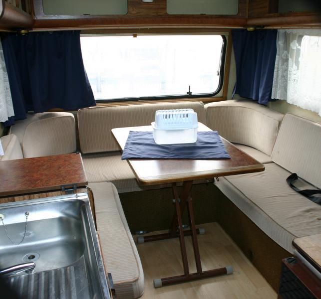 Ausstattung Wohnmobil, Das Wohnmobil verfügt über einen alten aber funktionstüchtigen Kühlschrank, er kühlt für sein alter noch recht gut , er funktioniert über Gas /12v/220V, obwohl ich sagen muß, über Gas ist die beste Leistung zu erzielen. Die Heizung ist super auch im winter es schön muckelig warm. Die Küche haben wir nie benutzt die Brenner funktionieren aber , Wir haben immer draußen gekocht, warm- /Kaltwasser ist über die Mischbatterie zu entnehmen. Warmwasserboiler wurde 2012 erneuert,und funktioniert über 220V, Das Badezimmer wurde durch den alten Wasserschaden, erneuert, die alte Duschtasse musste entfernt werden,und wurde durch ein erhöhten Boden ersetzt,so das man die fest eingebaute Kassettentoilette von außen entnehmen kann, der originale Schrank wurde erhalten , es wurde ein Eck Waschbeckenund eine moderne Toilette montiert (2012) . Ausstellfenster Küche Ausstellfenster hinten festes Fenster Links sind noch Original. Die schöne Sitzgruppe im hinteren Bereich bietet ordentlich platz, im umgebauten zustand können hier 4 Personen gut schlafen. die Vorhänge wurden erneuert und sind blickdicht man kann am tage so die sonne draußen lassen wenn nötig alle neu Eingebauten Dachluken, kann man verdunkeln und haben ein Fliegennetz. Durch das herunterlassen des Hubbettes entstehen weitere 2 Schlafplätze , oder 3 für Kinder , es ist auch hier genügend Platz. Im Staufach haben 2 große Gasflaschen Platz und können da auch ordentlich gesichert werden,