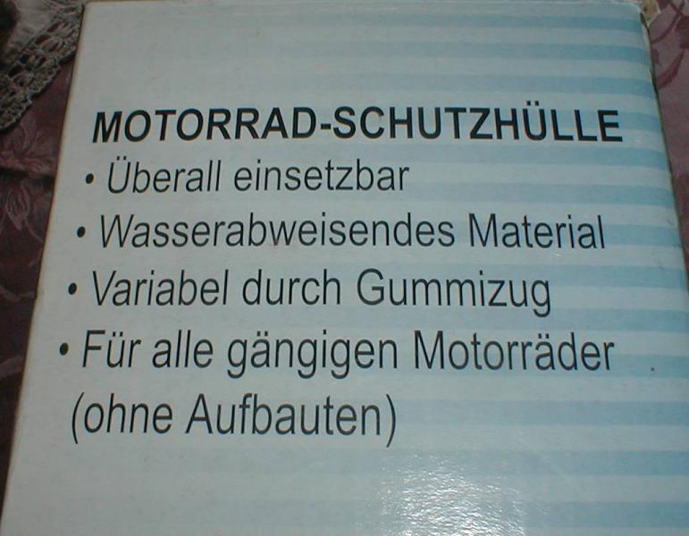 | Beschreibung: | Neue Motorrad Schutzhülle, die Verpackung ist noch nie auf gewesen !