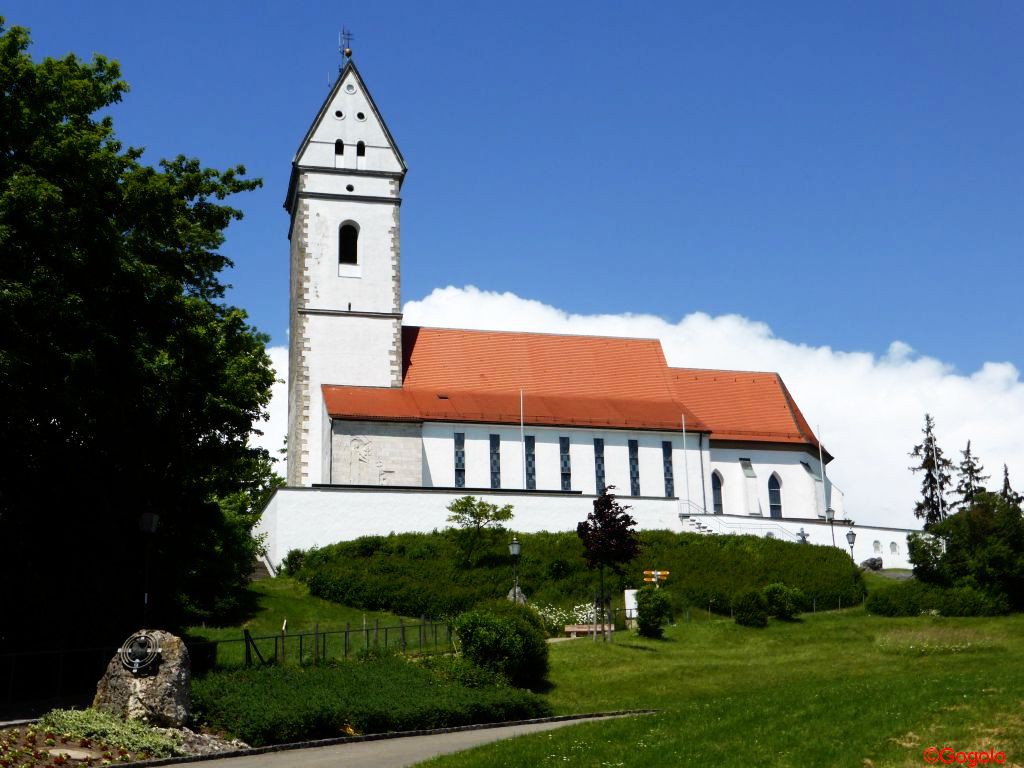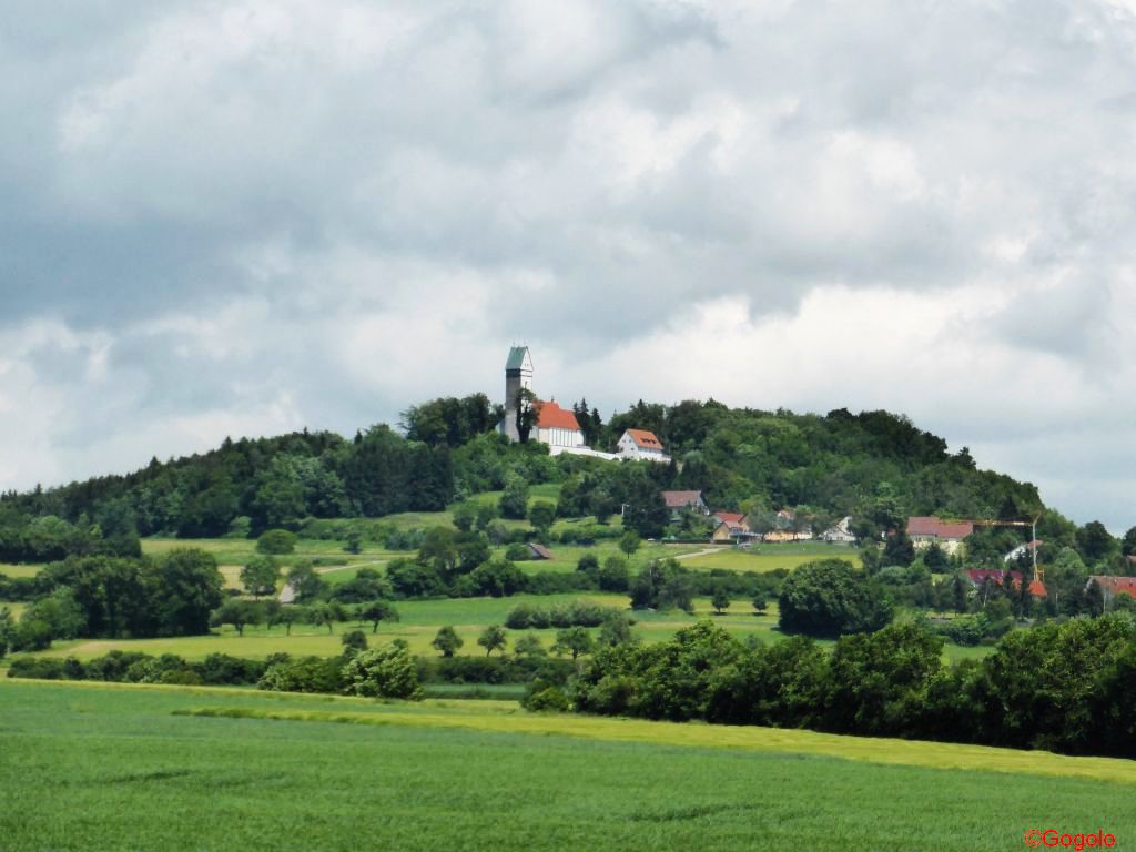 Bevor wir unser Tagesziel Riedlingen anfahren machen wir noch einen Abstecher zum Bussen. Der Bussen ist ein 767 Meter hoher Berg in Oberschwaben zwischen Unlingen und Uttenweiler, auf dessen Gemarkung er liegt. Er ist einer der meistbesuchten Wallfahrtsorte Oberschwabens und ein hervorragender Aussichtsberg mit Blick bis zu den Alpen. Manchmal wird er als „Hausberg Oberschwabens“ oder „Der Heilige Berg Oberschwabens“ bezeichnet. Die Aussicht ist wirklich gut, aber von Westen her nähert sich eine Gewitterfront, so dass wir bald wieder vom Berg heruntergehen und mit dem Gogolobil nach Riedlingen zum dortigen Stellplatz unmittelbar an der Donau auf einem großen Parkplatz inmitten der Stadt fahren.