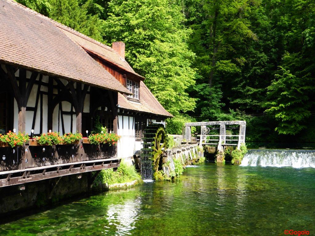 Und er beginnt mit schönem warmen Wetter, so dass die nur einstündige Fahrt über 55km nach Ulm das reinste Vergnügen ist. Wir machen aber noch einen Abstecher nach Blaubeuren zum sog. Blautopf. Den muss man gesehen haben. Der Blautopf in Blaubeuren ist die zweit-wasserreichste Karstquelle Deutschlands. Hier entspringt die Blau, die nach rund 22 km im Ulmer Stadtgebiet der Donau zufließt. Bekannt ist der Blautopf für die je nach Lichteinfall mehr oder weniger intensive, aber immer auffallend blaue Farbe seines Wassers. Und tatsöächlic h ist das Wasser intensiv blau! Am Blautopf gibt es ein Hammerwerk, das vom Wasser der Quelle angetrieben wird.