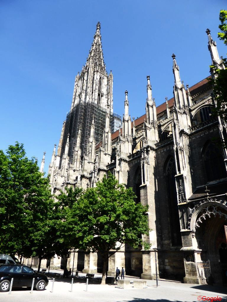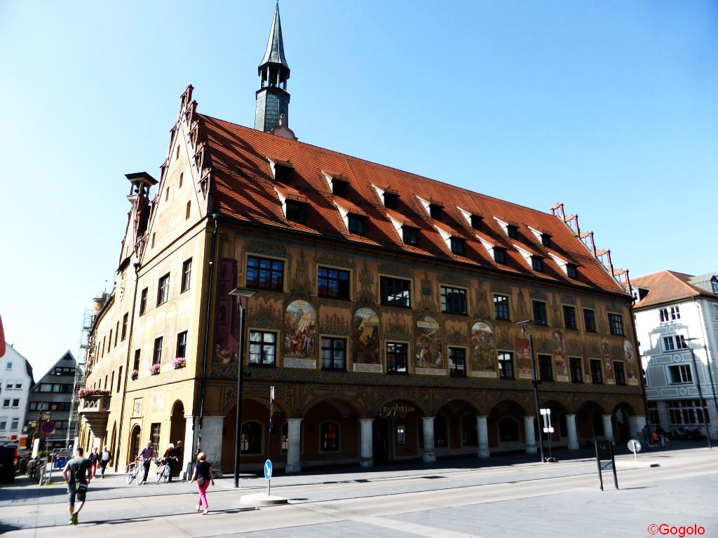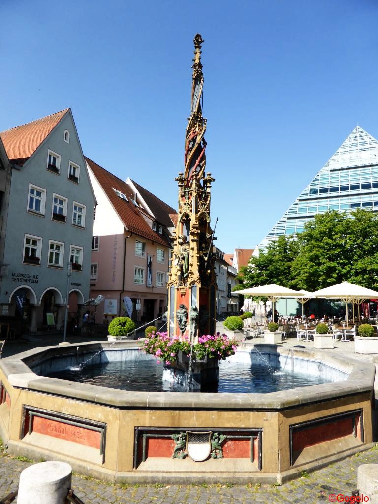 Wir fahren mit den Pedelecs am nächsten Tag ins Zentrum von Ulm und lassen die Räder am Metzgerturm stehen. Von dort ist es nicht weit zum gotischen Ulmer Münster mit dem höchsten Kirchturm der Welt, 161,53m hoch. Beeindruckend, was da für ein Bau vor über 500 Jahren begonnen hat. Nach den Plänen bei Baubeginn fasste das Münster mehr als doppelt so viele Menschen als damals Ulm Einwohner hatte. Wir gingen kreuz und quer durch die Stadt und waren am Ende auch im idyllischen Fischer- und Gerberviertel. Aber auch das gotische Schmuckstück der Stadt, das Rathaus mit der astronomischen Uhr aus dem 16. Jh. wäre durchaus sehenswert, wenn nicht ein Teil der Fassade gerade eingerüstet und renoviert wird.