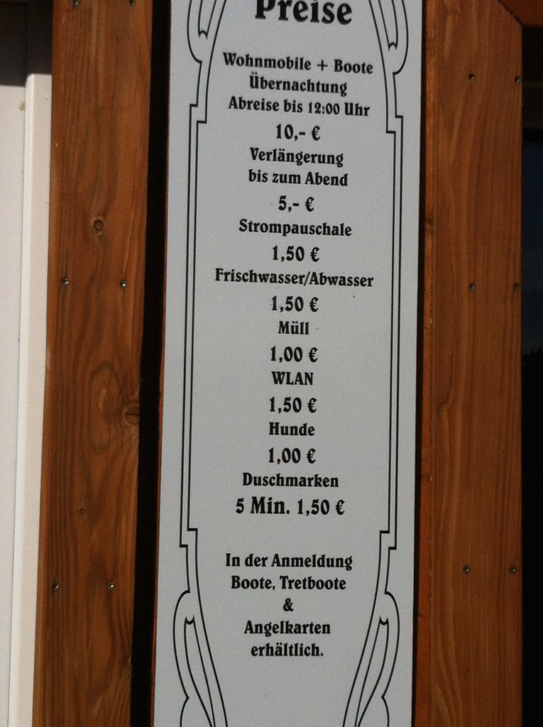 Wir waren am Wochenende auf diesem Stellplatz, weil wir etwas mit Bademöglichkeit für den Jüngsten gesucht haben. Der Stellplatz liegt direkt an der Havel und ist gleichzeitig ein kleiner Hafen für die dortige Hausbootvermietung. Der Stellplatz ist gepflegt und wir wurden freundlich begrüßt und uns wurde ein Platz (in 2. Reihe) zugewiesen. Das Gelände ist ausreichend eben und gut zu befahren. Der Platz bietet nicht nur eine Ver- und Entsorgung, sondern auch Frischwasser, Toiletten und Duschen, WLAN und eine Müllentsorgung. Die Preise möchte ich nicht im Detail auflisten, steht alles auf der Website. Wir haben aktuell für eine Nacht 10 EUR + 1 EUR für den Hund und 1,50 für die Entsorgung bezahlt. Der Stellplatz ist bis um 12 Uhr des folgenden Tages zu verlassen, ansonsten kann bis zum Abend für 5 EUR verlängert werden. Die Ver- und Entsorgung gestaltet sich problemlos, das einzige Manko ist, dass die Bodenentsorgung nahe der Ausfahrt liegt und hier ggf. etwas gewartet werden muss, bevor man durchkommt. Weiterhin ist die Zufahrt im Ort teilweise etwas eng, so dass größere Fahrzeuge vielleicht etwas mehr Probleme haben. Der "Strand" ist relativ klein mit grobkörnigem Sand. Der Zugang zu Havel ist problemlos, allerdings sollte man beim heraus schwimmen darauf achten, nicht von irgendwelchen Booten "überfahren" zu werden. Diese Angst ist berechtigt, wenn man die Hausbootmieter im Hafen anlegen sieht :D Hier der aktuelle Link (auch mit Fotos, da wir keine gemacht haben): --> Link Für uns war es ein schöner Aufenthalt und eine ruhige Nacht. Vemi wir waren vor einer Woche für 2 Nächte dort. Sehr freundliche Betreiber und sehr gepflegter Platz Gewöhnungsbedürftig sind die Duschen, da sind zwei Duschköpfe nebeneinander ohne dass eine Trennung da ist. Als ich mich gerade eingeseift hatte kam eine andere Dame herein und duschte sich keinen Meter entfernt auch, sehr eigenartig für mich 8) Anzumerken, es gibt nur 1 Automaten für den Münzeinwurf und 1.50 Euro für 5 Min. nicht gerade ein Schnäppchen. "Ein Schelm wer böses dabei denkt " :lol: :lol: :lol: hier ein paar Bilder vom Platz Steg und dahinter der Badestrand ![]() ![]() Rezeption und Sanitärgebäude ![]() übrigens der Ort heißt Pritzerbe und die ganze Gegend heißt Havelsee die Preisliste ![]() Sehr schöner Wohnmobilstellplatz am Havelsee gelegen. Ideal für Rad und Bootstouren entlang der Havel. Hier ein Auszug aus unserem Reisetagebuch (2015): ...Wir fahren weiter nach Pritzerbe zum Wohnmobilpark Havel-Oase. Der Stellplatz liegt direkt am Ufer der Havel - genau das, was wir uns vorgestellt haben. Bei Ankunft werden wir sofort vom Chef auf dem großen Wiesengelände mit Blick auf die Havel eingewiesen. 10,00 EUR/Nacht, 1,50 EUR Duschen ... Reisebericht mit Fotos [url]http://www.voos-camper.de/wohnmobil_buga/index.html[/url ![]() ![]() ![]() Sehr schöner Stellplatz mit, wie oben bereits beschrieben, etwas ungewöhnlichem Duschbereich. Bei einer Sitzung kann man schon mal nasse Füße bekommen wenn gerade einer duscht. 8) Auf der "Terrasse" stehen jetzt mehrere Tische und Stühle die man nutzen darf und eine Schaukelbank im Baum direkt am Wasser. ![]() ![]() ![]() |