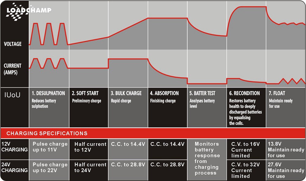 Ich finde die Erklärung von Alf sehr treffen. Das Problem bei all den Erklärungen ist meiner Meinung nach der oft verwirrende Regelmechanismus. Bulk = Konstantstrom JA, aber kein Konstantstrom ohne ansteigende oder abfallende Spannung (aber nicht mehr als die Gasungsgrenze) wenn sich am Verbraucher (Batterie) die Parameter (Innenwiderstand durch steigende Ladung) ändern. Und Konstandstrom nur innerhalb der möglichen Grenzen des Ladegerätes aber am besten (Lebensdauer) im Bereich von 25-20% der Batteriekapazität (also bei 100Ah ca. 10-20A) , eine größere Batterie könnte (aufgrund ihres Innenwiderstandes) eventuell sogar mehr vertragen. Leider ist diese Erklärung aber durch ihre Eingrenzungen auch nicht besser verständlich als alle anderen vorher. Batterien und ihre Ladung/Entladung sind halt komplexe Vorgänge!! Andreas