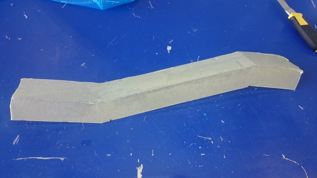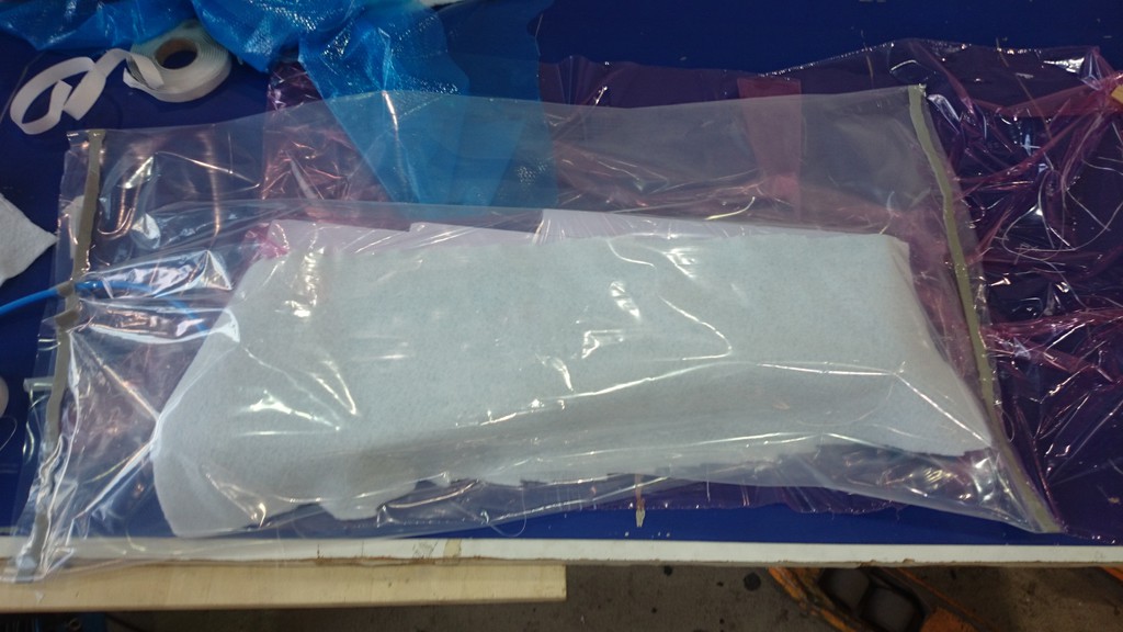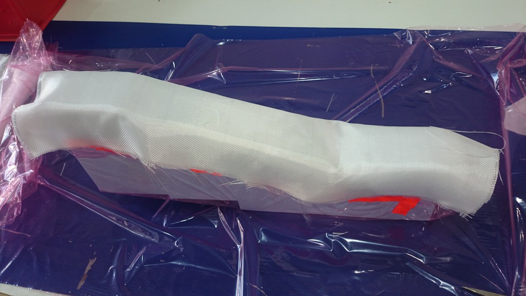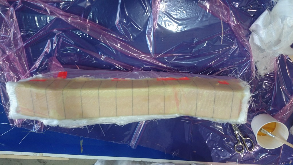 Darauf dann über Folie 3 Lagen Glasgewebe mit EP Harz laminiert, und unter Vakuum ausgehärtet.
