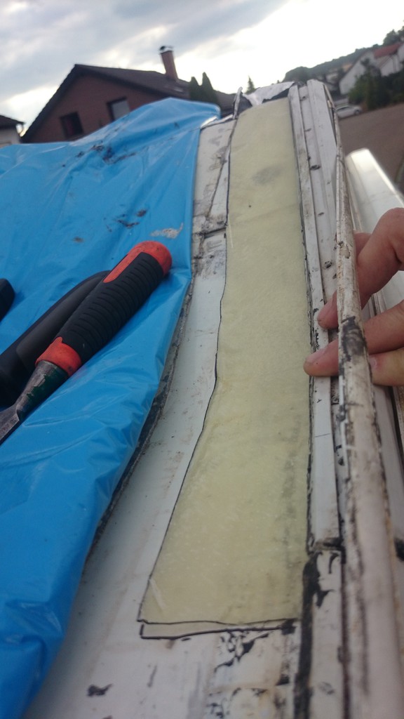 nachdem mein Thread im Sommer über ein wenig eingeschlafen war - soll es nun der Vollständigkeit halber weiter gehen. Ich habe den Schaden in zwischen repariert, es scheint auch dicht zu sein bisher. Habe hier im Forum einige gute Tipps abgeschaut, und will euch zeigen, wie ich es bei mir gelöst habe.