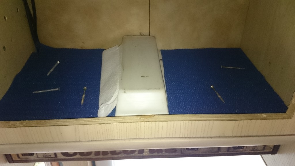 Ich überlege, ob ich am Ende noch einmal über alles eine 2mm Sperrholzplatte drübermache, so als gemeinsame Deckschicht quasi.... Ist dann im Schrank, sieht keiner mehr. So ein Kunstleder mach ich nicht mehr drüber, dann sieht man wenigstens gleich, wenns wieder undicht wird :-)