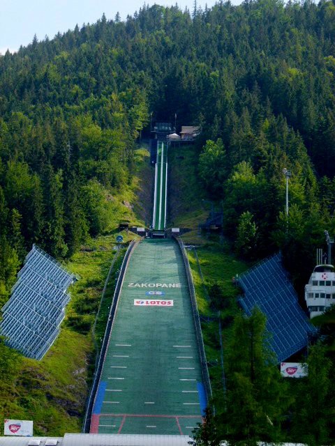 Die Adresse ist nicht ganz korrekt, Straße heißt Zeromskiego, Lage ist jedoch richtig. Der Campingplatz liegt direkt am Sportzentrum und unterhalb der Sprungschancen. Es ist ein kleinerer Campingplatz, der vorwiegend mit Zelten belegt ist. Ein kleiner Teil ist für Wohnwagen oder Wohnmobile ausgewiesen. Die Sanitranlagen sind wahrscheinlich so alt wie der Platz selbst und noch auch kommunistischen Zeiten. Es gibt warmes Wasser, aber ansonsten ist der Standart im untersten Bereich anzusiedeln. Die Duschen werden von sehr vielen Menschen im Laufe des Tages frequentiert und sind nicht so ganz sauber, mal vorsichtig ausgedrückt. Zum Centrum ist es einige Kilometer. Es fahren aber von der Hauptstraßein kurzen Abstanden Linienbusse (Kastenwagen) in die Stadt, kostet 3 Zloty für eine einfache Fahrt. Zur Seilbahn hinauf (es ist ratsam, auch hier den Bus zu nehmen) ist es auch nur einige Kilometer. Karten für die Seilbahn unbedingt an den Automaten in der Stadt kaufen, sonst muss man sehr lange, in Menschenschlagen bis 20 m in Fünferreihen, anstehen. Mit einem Ticket kann man den linken Eingang nehmen und kommt recht schnell in die Seilbahn. Festes Schuhwerk und ensprechende Kleidung sind sehr ratsam. Es kann recht kalt sein auf dem Berg. Die Aussicht ist grandions. Julia Hier noch Fotos vom Campingplatz. ![]() ![]() ![]() Der Platz liegt direkt unterhalb der Sprungschanze. ![]() Julia |