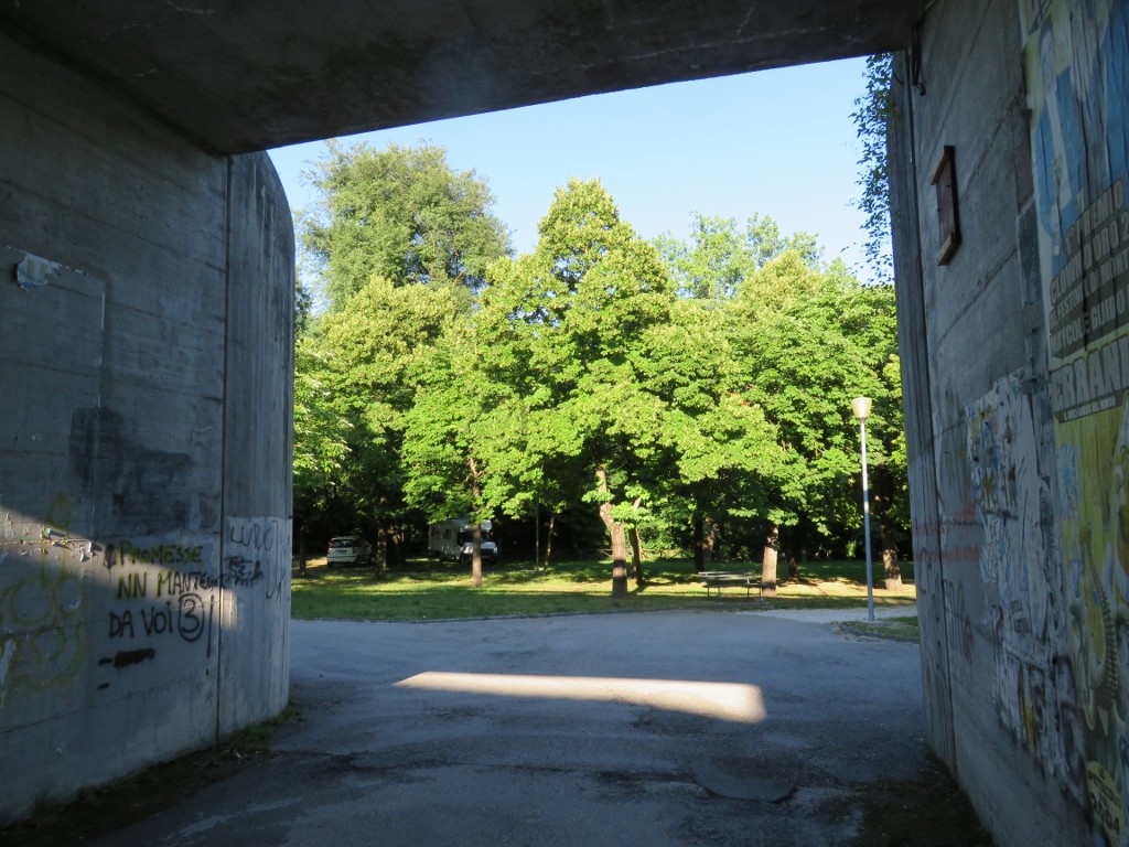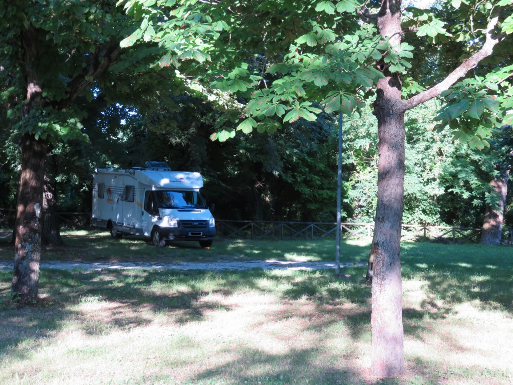 "Stellplatz" in einem kleinen Park mit altem Baumbestand. Untergrund vorwiegend Gras,wenige Stellen gesplittet. Im Sommer ist das schattige Plätzchen recht angenehm. Es gibt keine Markierungen, jeder sucht sich seinen Platz nach Gutdünken. Am Platzrand altes Gebäude mit WC und Waschbecken, aber der Zustand ist katastrophal. An der Zufahrt, ca. 150 m entfernt vom Platz, liegt die V+E-Station, die natürlich nicht den neuesten Standards entspricht, aber ist akzeptabel. Stromanschlüsse nicht vorhanden, daher auch kostenlose Platzbenutzung einschl. V+E. Die Altstadt ist in 10 Minuten zu Fuss erreichbar. Das Gelände wird untertags auch von Pkw`s zum Abstellen benutzt. ![]() Schattiger Platz für jeden ![]() Zufahrt durch Unterführung ![]() Die V+E-Anlage |