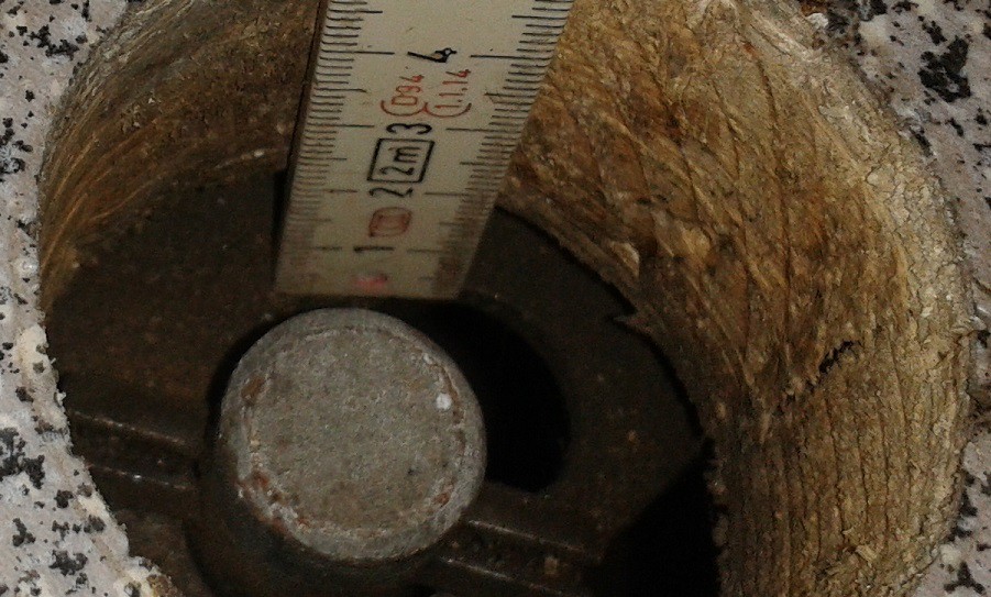 Vermutlich wurde an dieser Stelle bei der Produktion ein Holzklötzchen eingelegt. Deshalb ist die Isolierung nicht sichtbar.