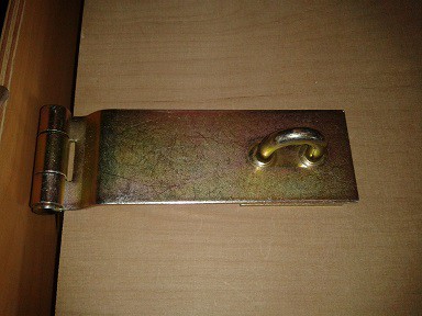 Rechts am Deckel fehlen natürlich noch die Scharniere. Die werde ich auch wie die Schlossfalle mit Schloss-Schrauben befestigen. Und die werden ähnlich stabil sein, wie das Schloss-Teil (6mm Stahl). Vorhängeschloss kommt natürlich auch noch dran :razz: