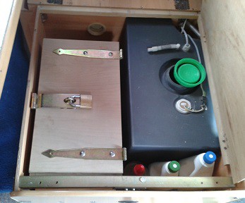 Ich finde, die Idee von Hotte mit der Tarnung hat Charme. Könnte mir vorstellen, einen Abwassertank vom Schrottplatz (auch Womos enden dort) entsprechend zu zerschneiden, ausgestattet mit entsprechenden Fake-Anschlüssen etc. über die Kiste zu stülpen und versteckt zu verriegeln.