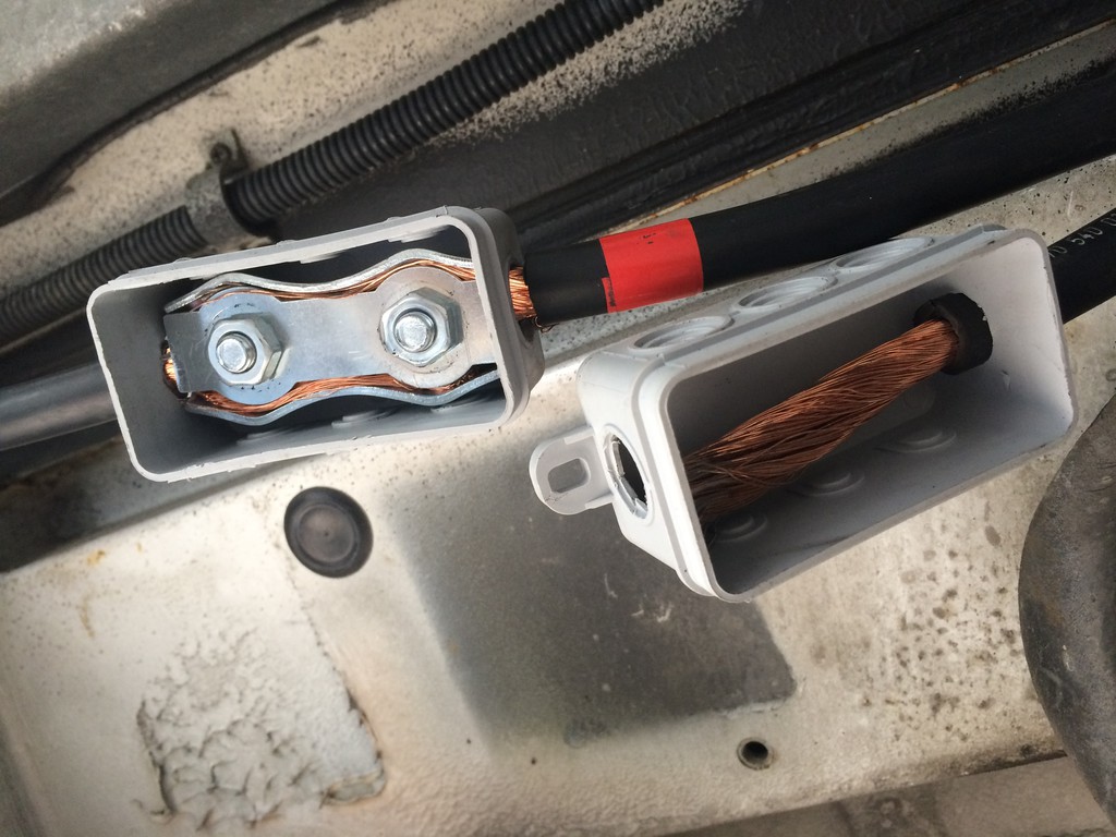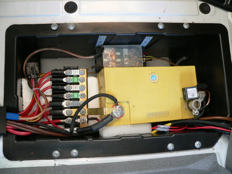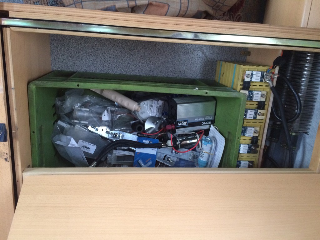 Das ganze Projekt ist nicht zu empfehlen aus vielen Gründen. Die Lichtmaschine / Bordelektronik ist nicht auf LifePo ausgelegt und wird die Baterie daher nicht richtig bedienen. Die Kabelverlängerungen sind stümperhaft in einer billigen Verteilerdose für den Innenbereich angefertigt statt 5,- Euro für einen zugelassenen Verteiler für den Außenbereich IP68 zu verwenden. Dann noch die fehlende Crimpung der Kabel, ist ganz übel. Man kann ja gerne basteln, diese Geschichte mit der Starterbatterie ist purer Unsinn, Sorry. Ich kann jeden nur raten das nicht nachzuahmen, zumal die Ausführung wie oben zu sehen echt schlecht gemacht wurde. :(