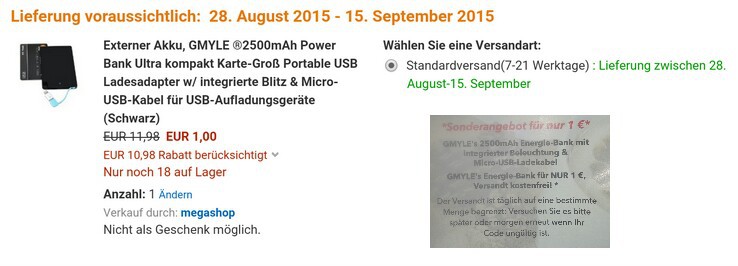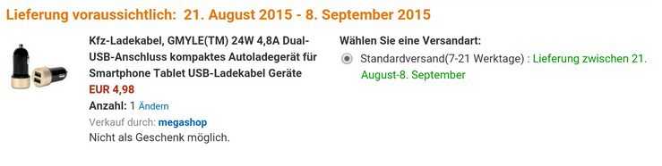 --> LinkKudlWackerl hat geschrieben:einen neuen Zigaretten-Anzünder-USB-Ladeadapter mit 2 x 2,4 A (!) bei gleichzeitiger Nutzung