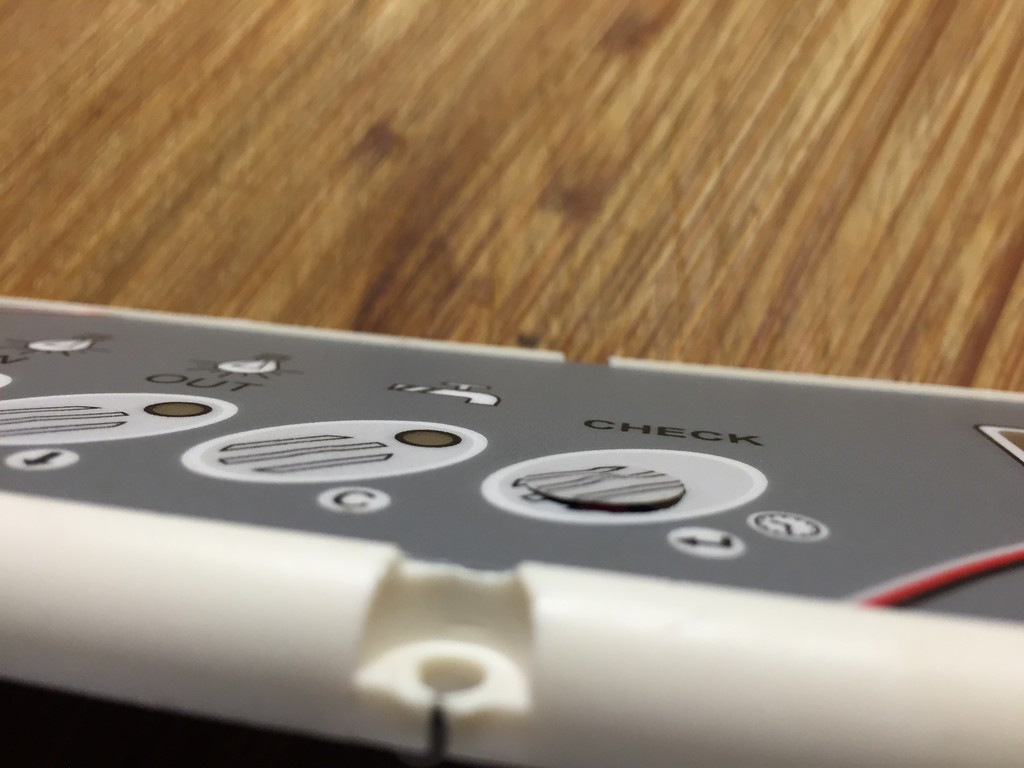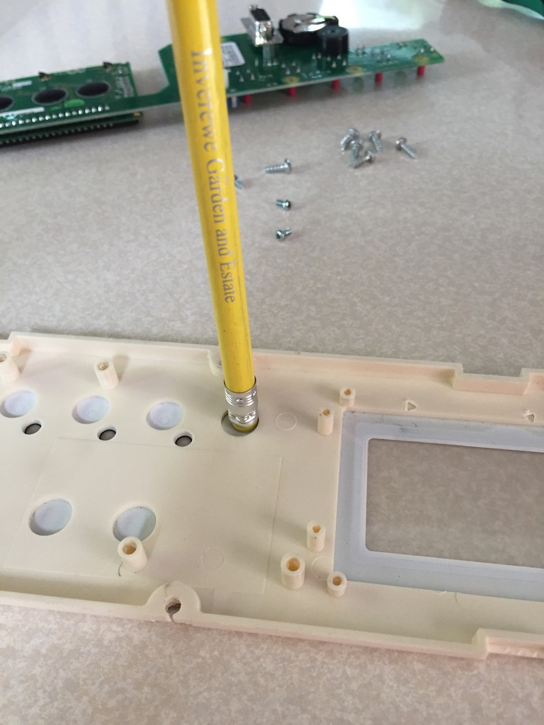 Ich habe dann noch die Platine abgeschraubt und im Bereich der Taster die Folie nochmal zusätzlich mit einem Radiergummi angedrückt: