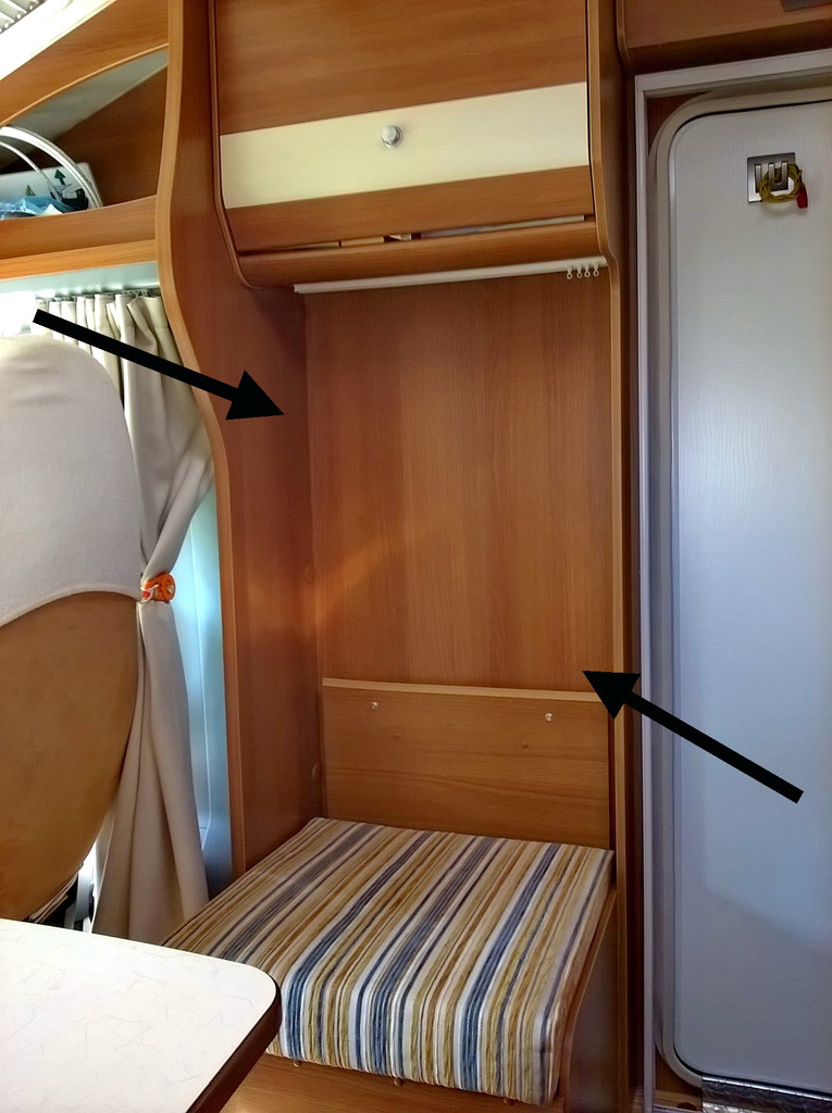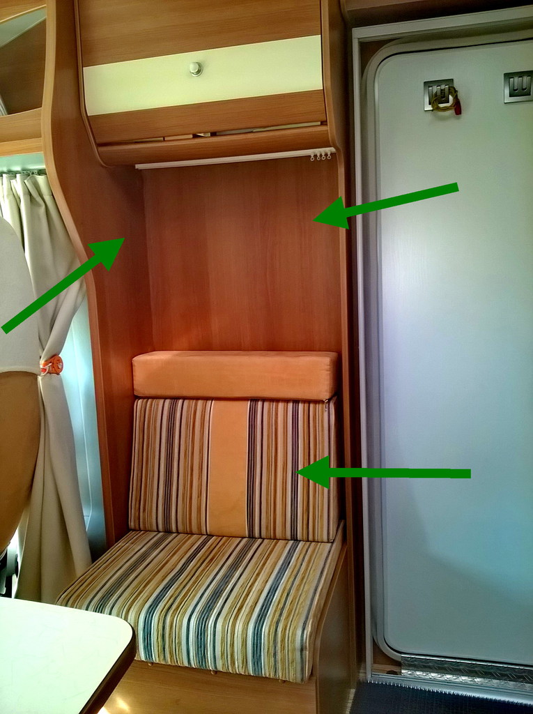 Die über den Polstern befindliche Atrappen- Gardine hab ich schon mal entfernt. Staufach unter dem Sitz soll weiterhin nutzbar sein. Auch die Polsterauflage auf dem Sitz soll so bleiben. Was könnte man darüber sinnvoll gestalten? Bin für Vorschläge Dankbar.