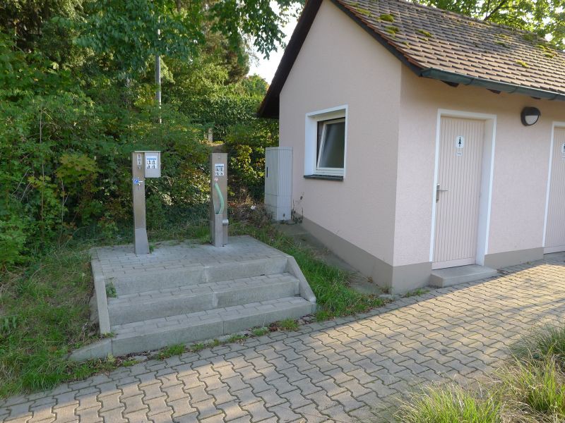 Stellplatz am Ende des Parkplatzes Pegnitzwiese, auf der gegenüberliegenden Seite des großen Parkplatzes. 4 Stellplätze, gepflastert, kostenlos. Allerdings durch die gut befahrene Briver Allee recht laut. Strom 1 € - 8 Std. V+E und Toiletten, kein Bodeneinlass. Kurzer Weg in die sehr schöne Altstadt. Bäcker haben wir keinen gefunden. Richtung Süden höhere Bäume, deshalb evtl. eingschränkter Fernsehempfang auf einigen Plätzen. ![]() ![]() ![]() ![]() ![]() ![]() Tagesgebühr 6,- € Wasser Entnahme wegen Vandalismus defekt Kassettenentsorgung in Betrieb (auch Nachspülen) Stromsäule defekt Toiletten sauber, allerdings durch Graffiti "verschönert" |