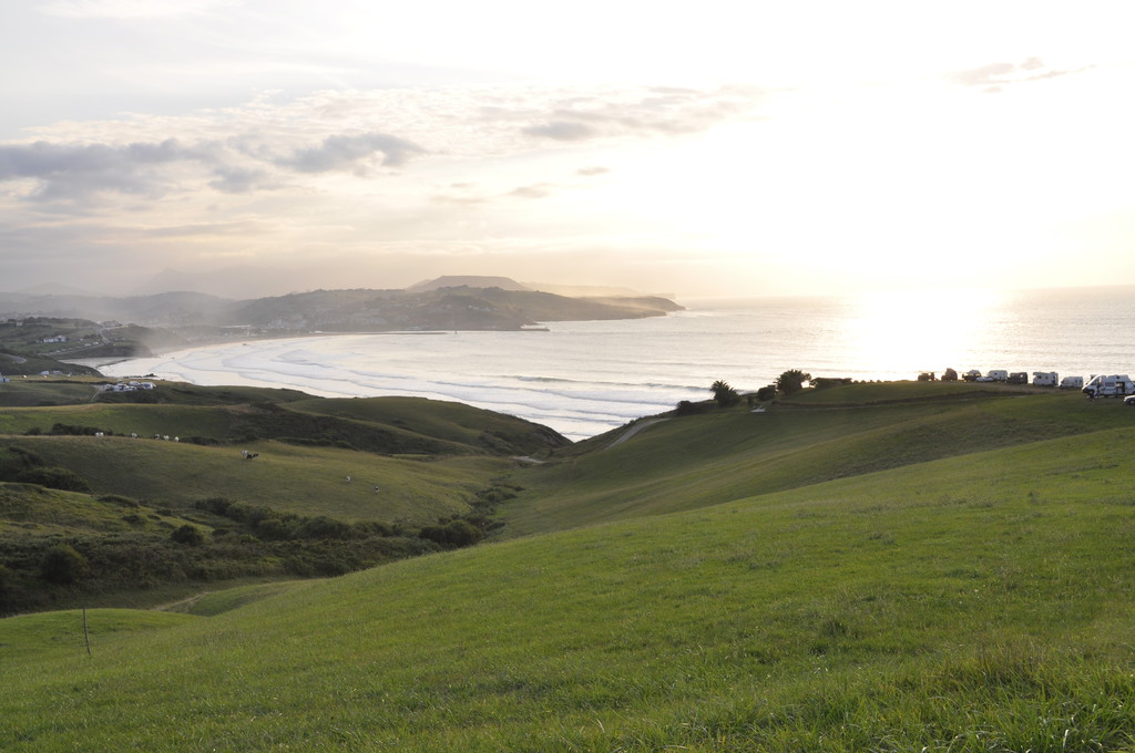 Auf den Hügeln über der Playa de Gerra gibt es einige Möglichkeiten, frei zu stehen. Sehr beliebte Stellplätze bei den Surfern. Hier einer der Plätze: ![]() Die Wiesen sind Eigentum ortsansässiger Bauern, die am Abend gerne vorbeischauen, um einen Obulus von 5€ pro Fahrzeug zu kassieren. |