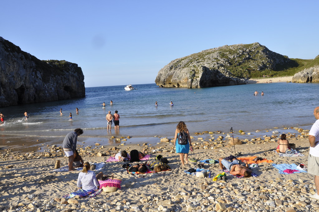 Wer an dem vom Ehepaar Schulz ("Mit dem Wohnmobil in Nord-Spanien", S.120f.) hoch gelobten Strand bei den Cuevas del Mar übernachten will, tut gut daran, nicht ganz bis zum Strand zu fahren. Dort ist während der Saison nur sehr wenig Platz. Die von den Schulzens so abenteuerlich geschilderte Durchfahrt durch den Naturtunnel ist halb so wild, dafür das Wenden dahinter zwischen den gestapelten PKWs um so prickelnder. Besser ist es, vor dem Tunnel auf dem weitläufigen Wiesengelände zu parken. Das Übernachten wird geduldet. Es könnte sein, dass gelegentlich der Besitzer der Wiese auftaucht und einen kleinen Obulus verlangt, wie es auch bei anderen Freistehplätzen in der Gegend üblich ist (5-7€). Bei uns kam allerdings niemand. Der Strand selbst ist nicht sehr toll (dicke Kiesel in Kindskopfgröße), die Lage dagegen sehr schön und die angrenzenden Höhlen einen Besuch wert. ![]() |
